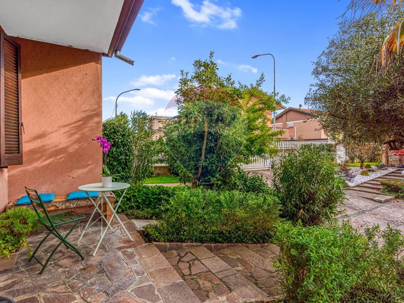Al piano terra troviamo una cucina abitabile con porta finestra affacciata sul giardino interno, un ampio soggiorno con uscita diretta sul giardino privato e un bagno di servizio.