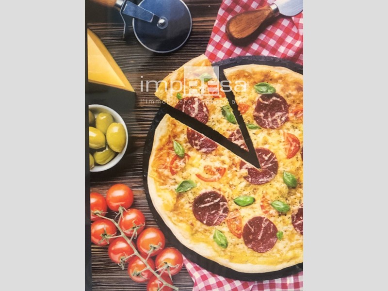 Il ristorante/pizzeria, di circa 200 mq, si presenta al piano terra, arredato di tutto con veranda coperta di 50 mq e terrazza estiva. All'ingresso è presente anche una zona bar attualmente non usata. La struttura si presenta in buone condizioni conservative senza il bisogno di importanti opere di ristrutturazione. Il ristorante dispone di una cucina attrezzata e di un forno a legna per le pizze e si completa con tre bagni separati per uomini, donne e persone disabili.