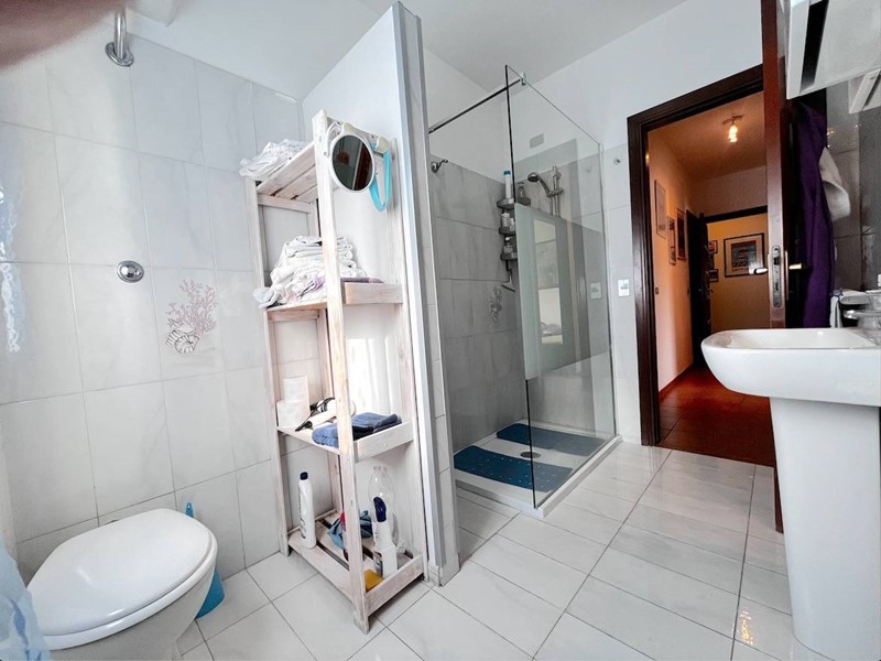 L'edificio è stato completamente ristrutturato esternamente, in epoca recente, con rifacimento delle facciate, dei parapetti dei balconi e delle parti condominiali; l'appartamento presenta finiture dell'epoca di costruzione (1986), ma è mantenuto ottimamente, con infissi in legno con doppio vetro ed impianto di aria condizionata nella camera padronale. Le tre camere da letto e gli spazi ampi e comodi, lo rendono una soluzione perfetta anche per una famiglia numerosa. La sua esposizione Sud-Est-Nord, permette di godere di tutti gli spazi interni ed esterni in ogni momento della giornata. Anche gli accessori (garage e cantina) offrono due comodità irrinunciabili.