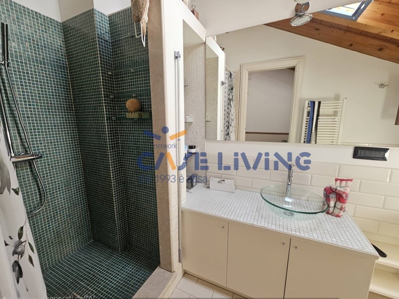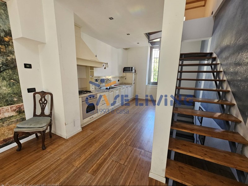 La cucina è spaziosa e funzionale è collegata ad una scala che porta al piano primo dove troviamo una ampia camera matrimoniale, un bagno completo con doccia e sanitari, anticamera con ripostiglio/scarpiera e un angolo disimpegno/ufficio.