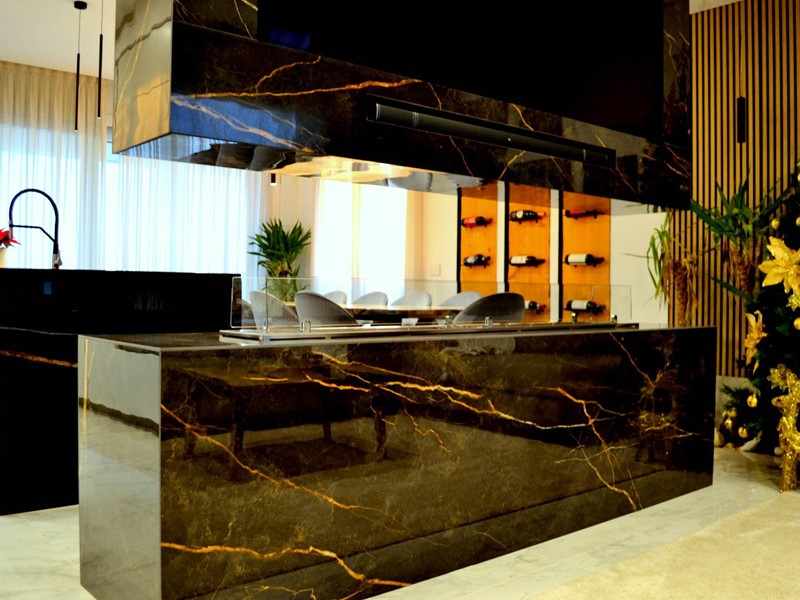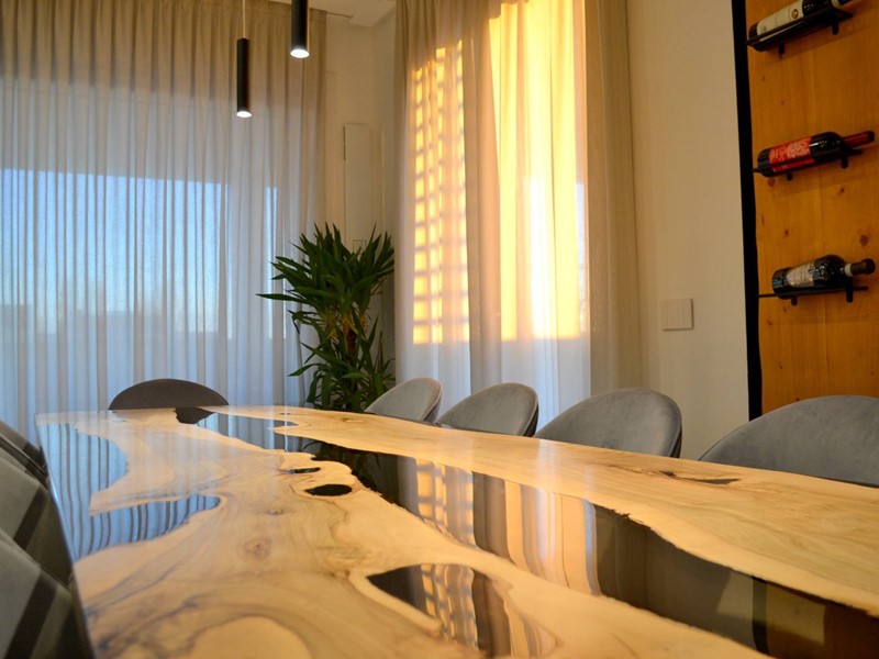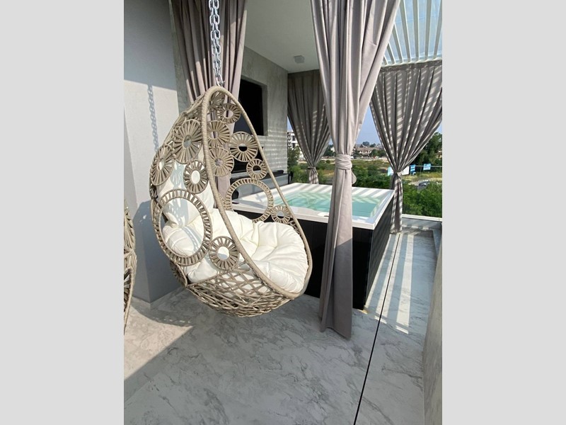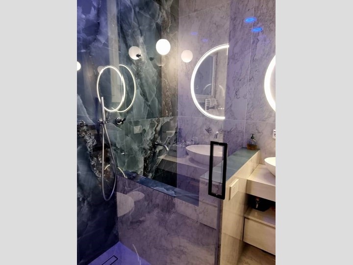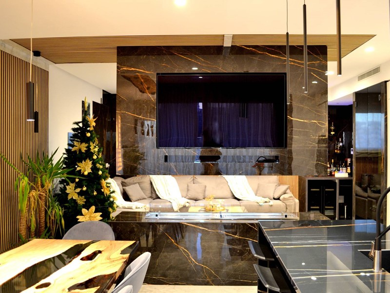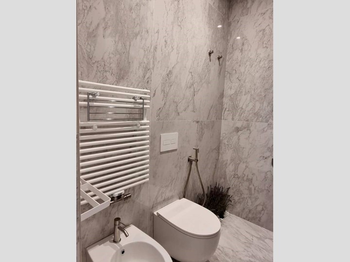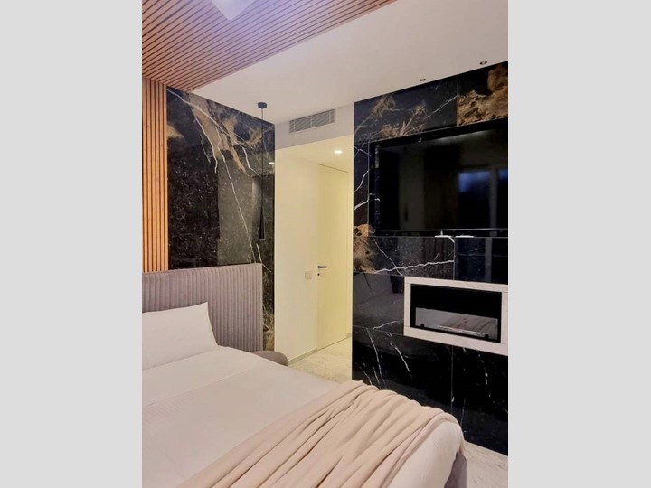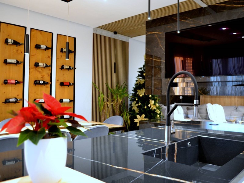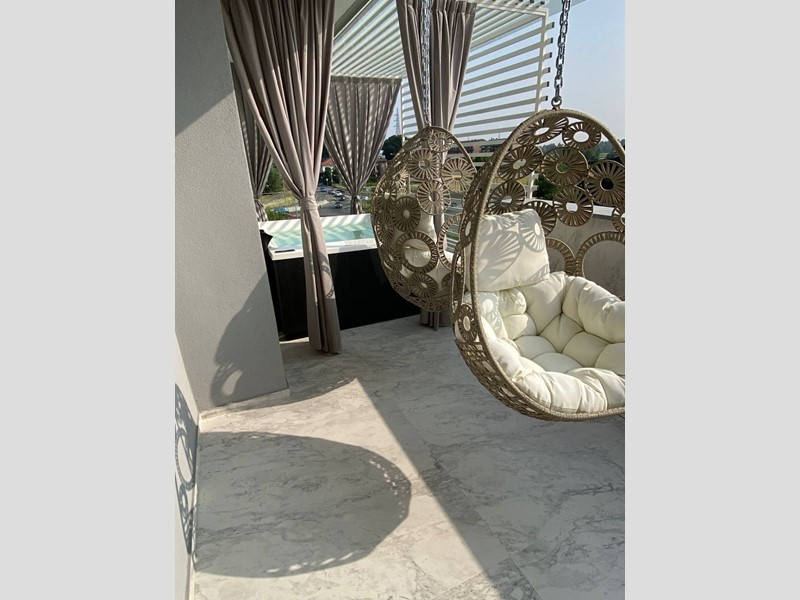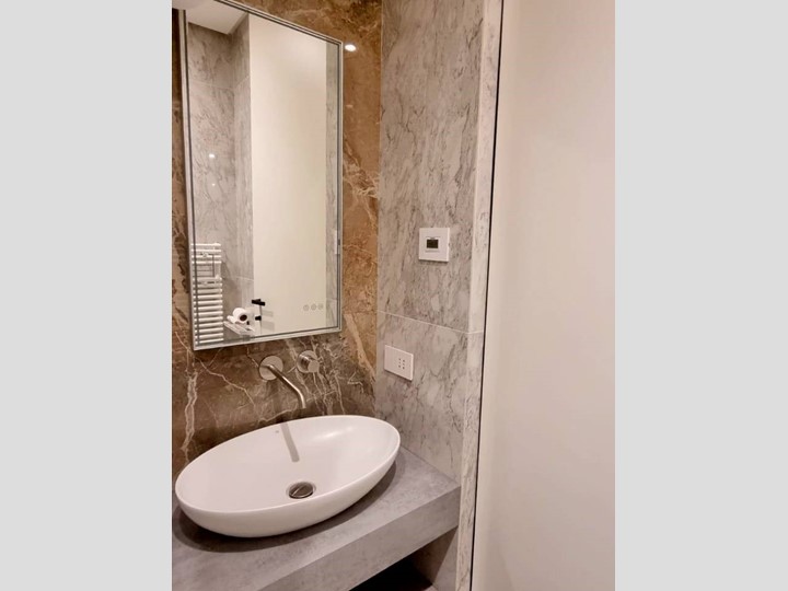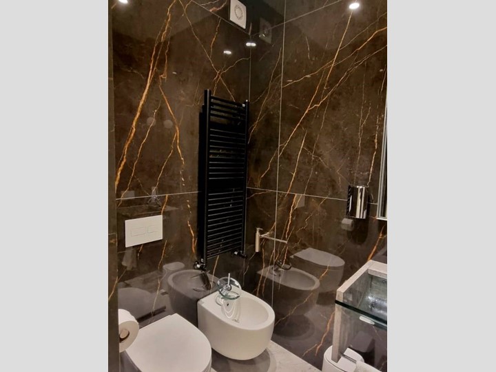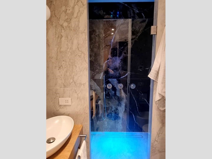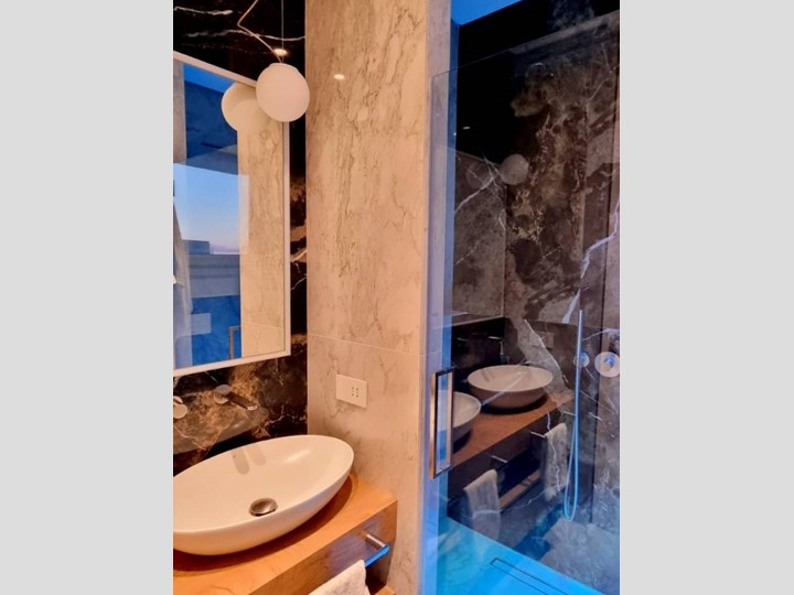 Appartamento è cosi composto: Luminoso soggiorno con cucina a vista, tre ampie camere da letto, ciascuna dotata di un bagno privato esclusivo con docce all'avanguardia (inclusa la crioterapia).
