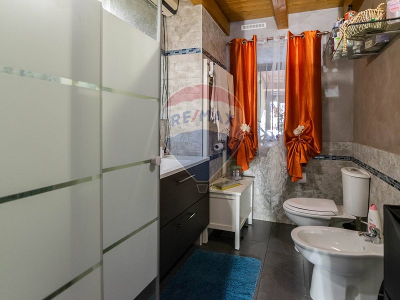 Ampio bagno ristrutturato con finiture moderne.