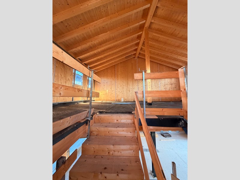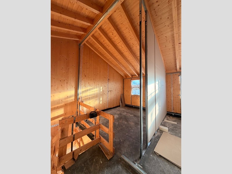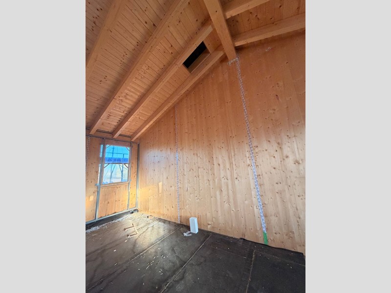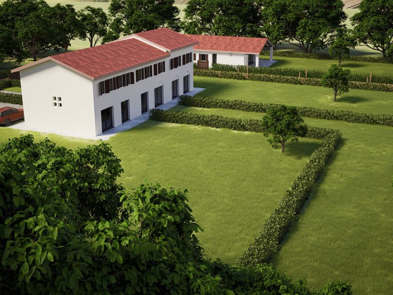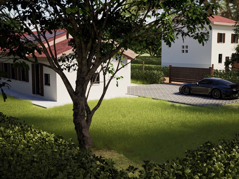La casa è realizzata in bioedilizia con struttura in legno e travi a vista, ed è completata da pannelli fotovoltaici che contribuiscono alla classe energetica A4, garantendo comfort, efficienza e unarmonica integrazione con lambiente circostante.