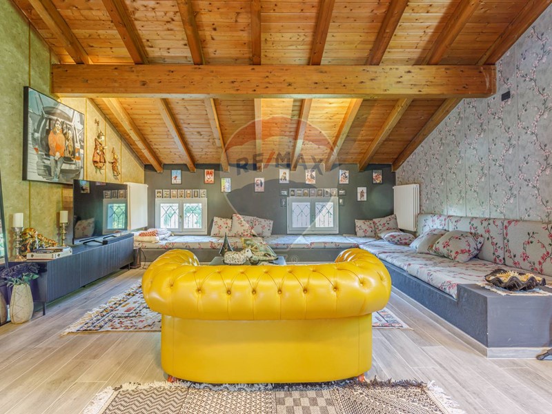 Spazi esterni e Verde Privato Il parco e le aree verdi offrono una connessione diretta con la natura, garantendo privacy e relax : Giardino principale di 500 mq, Piscina panoramica di 16x8 m con un ulteriore giardino di 600 mq, gazebo e dehors. Frutteto di 1.100 mq orto di 150 mq Campo da tennis/calcetto tra giardini, perfetto per il tempo libero.