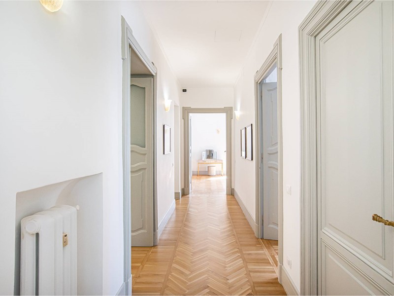 Rif.: CBI073-902-130065 - Pinciano - Via Saverio Mercadante - La Coldwell Banker è lieta di proporre in vendita IN ESCLUSIVA nelle immediate vicinanze di Via Saverio Mercadante, nel cuore del signorile quartiere Pinciano, in un bellissimo villino d'epoca di 5 piani con ascensore e servizio di portierato, realizzato nel 1925 dal celeberrimo architetto Clemente Busiri Vici, uno splendido e luminosissimo appartamento ristrutturato di CATEGORIA A/2 di altissima rappresentanza posto al primo piano catastale sopra il piano rialzato, affaccio secondo alto, unico al piano. La residenza si presenta con una monumentale bellissima galleria di oltre 20 metri con soffitto a volta alto oltre 4,15 metri, con pavimenti in pregiato marmo nella galleria e negli ampi bagni, e pregiato parquet nei saloni e nelle 4 camere da letto. Alti portali in legno nobile danno accesso al triplo salone impreziosito da materiali ed arredi di pregio, con soffitti a cassettoni decorati a mano, boiseries e librerie alle pareti, un bel camino ornamentale in splendido marmo di qualità macchia vecchia e sontuosa sala da pranzo. Dalla galleria si accede da un lato al bello studio che conduce al piccolo e riservato balconcino ornamentale. Dal lato opposto della galleria si accede alla zona notte attraverso un ampio corridoio che conduce alle grandi 4 camere da letto matrimoniali, delle quali 2 con bagno en-suite e bow-windows, 2 ampie cabine armadi, 2 bagni padronali, ampi armadi a muro e a seguire alla stireria/lavanderia e camera di servizio con relativo bagno. Alla bella cucina abitabile con tinello e seconda zona pranzo, si accede sia tramite la galleria e sia dal corridoio di servizio, adiacente al secondo ingresso di servizio, anchesso dotato di porta blindata. La metratura interna della casa è di circa 450 mq. La pianta è regolare e gli spazi sono distribuiti in modo molto razionale, ed ogni spazio è ottimizzato al meglio. L'ottima esposizione a 360° gradi rende l'immobile molto luminoso, grazie anche alle numerose finestre fuori misura. Gli infissi sono in vetro legno, doppi, e le serrande sono motorizzate. Il riscaldamento è centralizzato con contabilizzatori di calore ed ogni ambiente è dotato di impianto di climatizzazione canalizzato. Limmobile è dotato di 2 porte di accesso, entrambe blindate, videocitofono e servizio di allarme. Completano la proprietà una comoda cantina di 10 mq, un ampio e prezioso box auto di 25 mq ed al suo lato un posto auto scoperto assegnato. LE PRESENTI INFORMAZIONI E PLANIMETRIE SONO MERAMENTE INDICATIVE E NON COSTITUISCONO ELEMENTI CONTRATTUALI. Coldwell Banker, presente in più di 40 Paesi con oltre 3000 agenzie e 100.000 agenti, rappresenta oggi il gruppo leader mondiale del mercato residenziale di fascia alta e medio-alta. In Italia, Coldwell Banker è presente dal 2009 ed oggi, con più di 100 agenzie ed oltre 600 agenti, rappresenta un gruppo leader nel settore, in grado di promuovere i propri immobili di prestigio allinterno del circuito mondiale del lusso, attraverso il programma Coldwell Banker Global Luxury, la più prestigiosa vetrina internazionale del comparto.