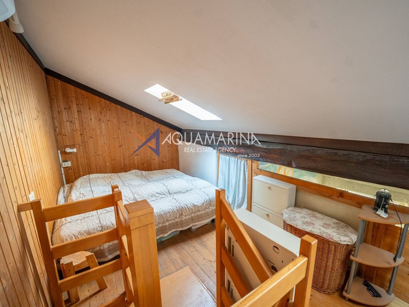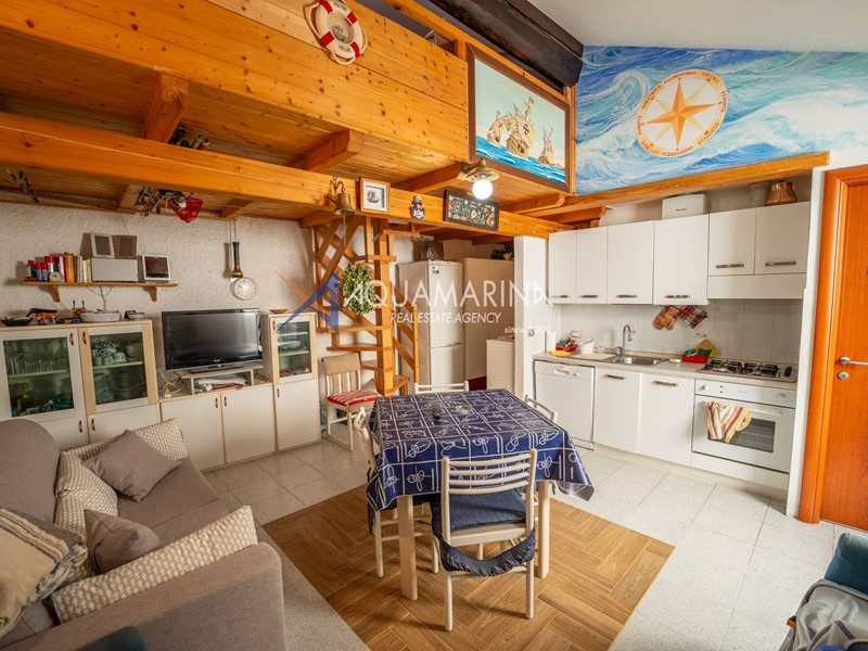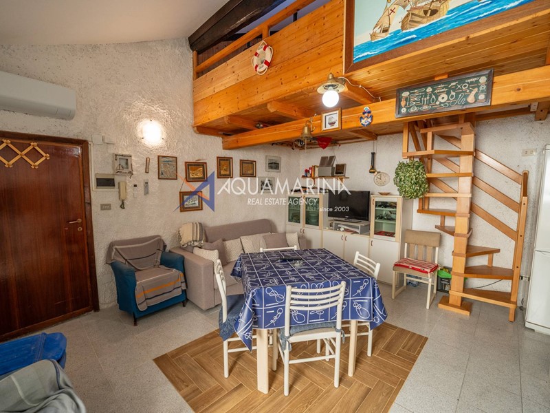 Situato al primo piano, questo spazio accogliente e ben distribuito si compone di una luminosa zona giorno, un elegante soppalco dedicato alla zona notte e un bagno finestrato.