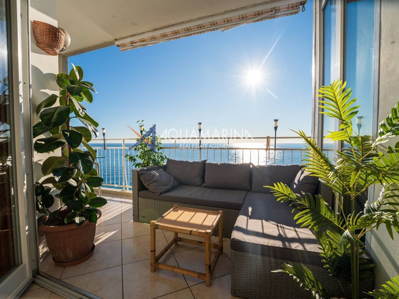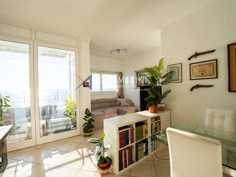 Sanremo, appartamento vista mare. Vendiamo appartamento al 5° piano con ascensore, praticamente sul mare con vista mozzafiato, si affaccia sul mare con vista a 180° su Capo Nero, uno dei posti più suggestivi della riviera di Ponente. Grazie alla posizione e alle ampie vetrate, lappartamento viene inondato di luce naturale, il terrazzo vivibile, permette di godere di una vista impagabile e allo stesso tempo di vivere momenti di relax in totale tranquillità, praticamente in mezzo al mare. Limmobile è composto da ingresso con disimpegno, cucina a vista con dispensa e finestra vista mare, salone doppio con vetrata a picco sul mare e accesso al terrazzo, 2 camere con vista mare e accesso al terrazzo,1 camera studio con vista mare, bagno con finestra, un secondo bagno di servizio, terrazzo vivibile, balcone e una cantina. Il riscaldamento è autonomo con caminetto sospeso e tramite una pompa di calore che funziona per riscaldare e raffrescare lappartamento, i serramenti esterni sono in PVC con doppio vetro
