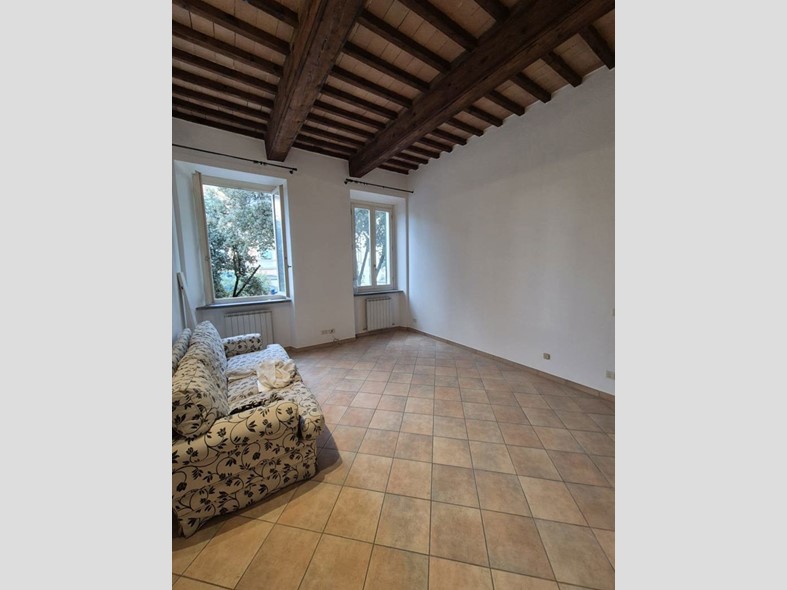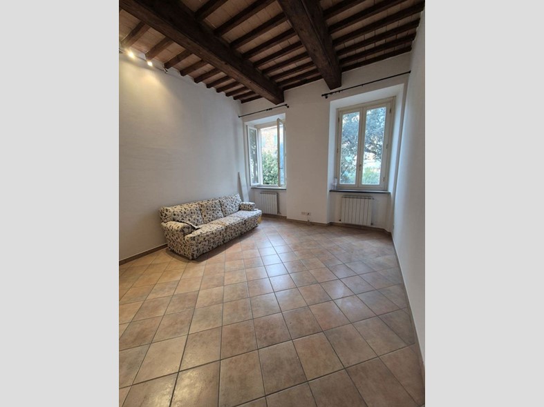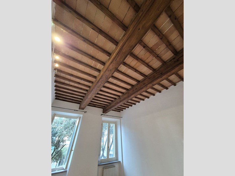 Nonostante l'assenza di pertinenze esterne come balconi o terrazzi, l'appartamento beneficia di un doppio affaccio che, insieme agli alti soffitti con travi a vista, regala una luminosità naturale straordinaria, creando atmosfera .