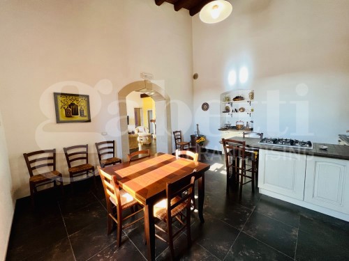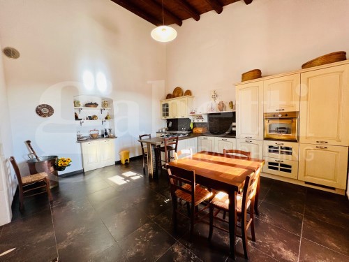 La casa padronale, abilmente ristrutturata nel rispetto dei caratteri originari della masseria, si estende per circa 200 mq e si presenta come una residenza accogliente ma raffinata. L'ingresso si apre su una luminosa zona living con cucina open space, impreziosita da soffitti con travi a vista e materiali tradizionali recuperati. Seguono un salotto intimo, ideale per momenti di relax, tre ampie camere da letto, un pratico ripostiglio e un elegante bagno dotato di doppia doccia.