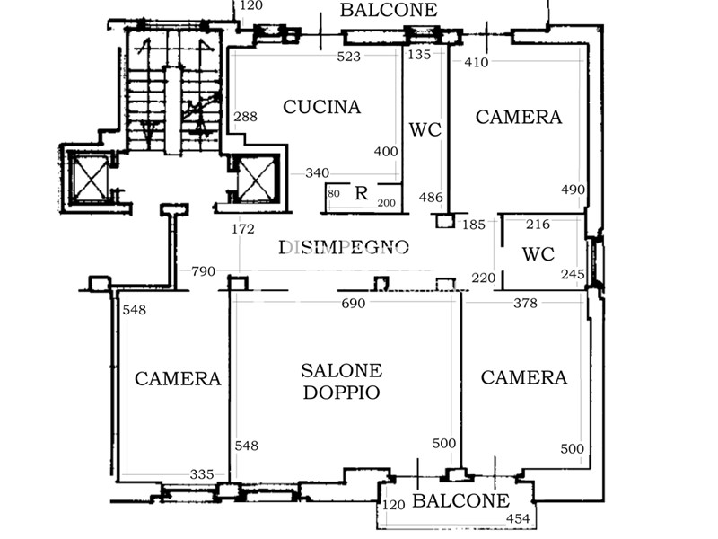 COMPOSIZIONE INTERNA: tripla esposizione, ampio ingresso, salone doppio, cucina abitabile, tre camere matrimoniali, doppi servizi, ripostiglio, due balconi, cantina al piano seminterrato;