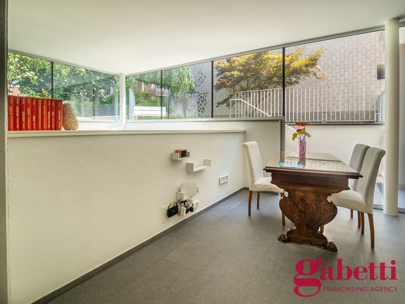 L'appartamento è composto da ingresso, soggiorno con cucina a vista, camera da letto e bagno. È presente un comodo terrazzino di circa 9 mq con affaccio sul curato giardino condominiale, garantisce grande tranquillità e una vista particolarmente gradevole.