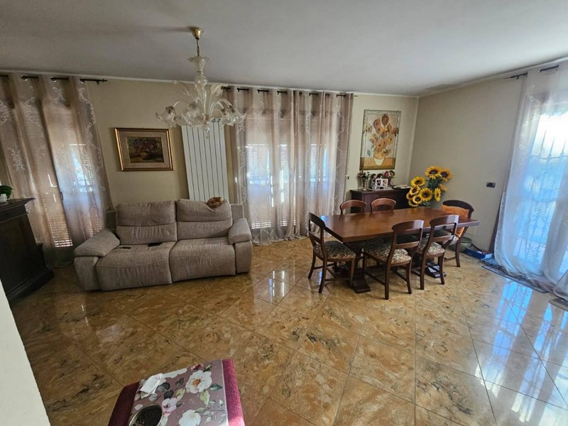 Piano primo, composto da grande soggiorno con porte finestre da cui si ha l'accesso al giardino, cucina, due ampie camere da letto e doppi servizi, per un totale di 117 mq.