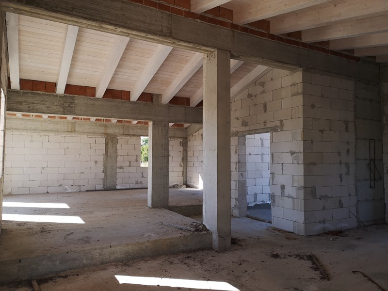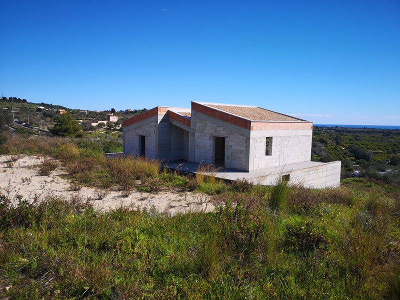 Offriamo struttura di villa da ultimare di recentissima costruzione. Immersa in un giardino di circa 14.528 mq, allocata sulla parte alta leggermente collinare, di fatti dalla veranda è possibile godere di uno splendido panorama con vista mare. La villa si articola su 2 livelli, piano interrato e 1°. Il fabbricato è circondato da scannafosso per tutta la cintura perimetrale. Il piano interrato è circa 110 mq mentre il 1° è più di 135 mq suddiviso in soggiorno, cucina, 2 bagni, lavanderia, 3 camere da letto, ampio ingresso (da progetto)in più esternamente ci sono 2 terrazzini e veranda coperta. Il 2° immobile che insiste sulla proprietà è una splendida dépendance di 67 mq, rifinita ed abitabile, con cucina in muratura, 2 camere da letto e bagno. La proprietà si presta a qualsiasi tipo di investimento, da struttura ricettiva ad altro.