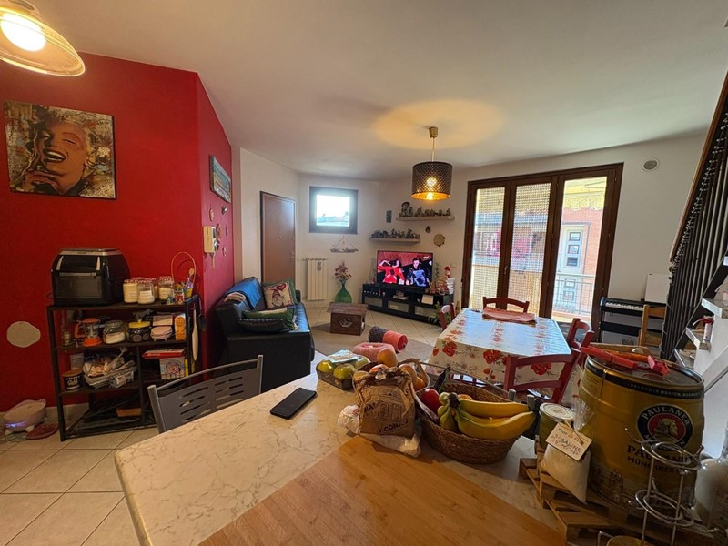 L'abitazione è così composta: zona giorno con angolo cottura e accesso su terrazza; disimpegno/corridoio, una camera matrimoniale con balcone, cameretta con affaccio su grande terrazza di circa 30 mq, ripostiglio e servizio igienico finestrato.