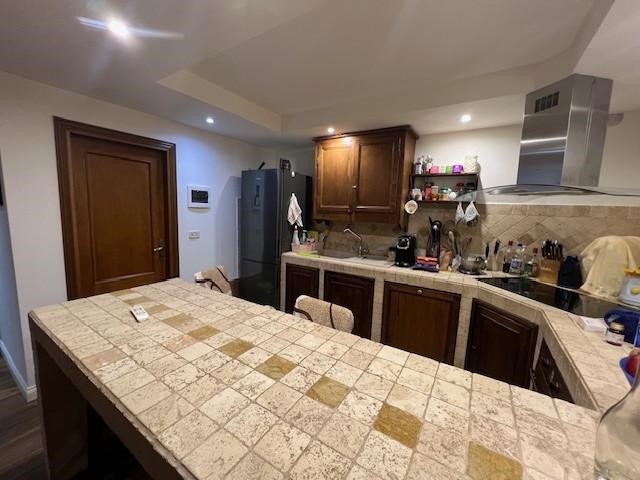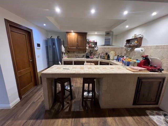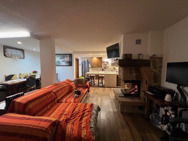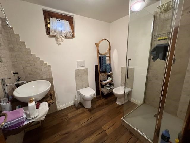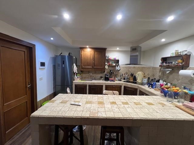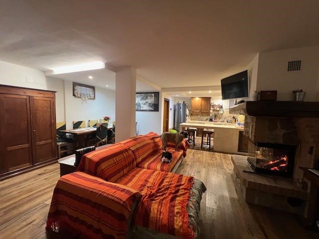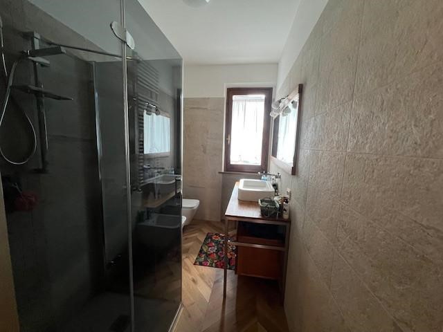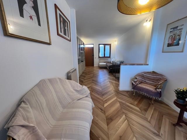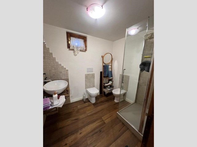 Scendendo al piano seminterrato, collegato internamente, troviamo una grande taverna ideale come secondo ambiente living. Il cuore di questo spazio è un termocamino, perfetto per creare un’atmosfera calda e accogliente durante la stagione invernale. La taverna è attualmente organizzata con zona soggiorno, angolo cottura e un secondo bagno, oltre all’accesso diretto al garage, comodissimo per entrare in casa con la massima praticità.