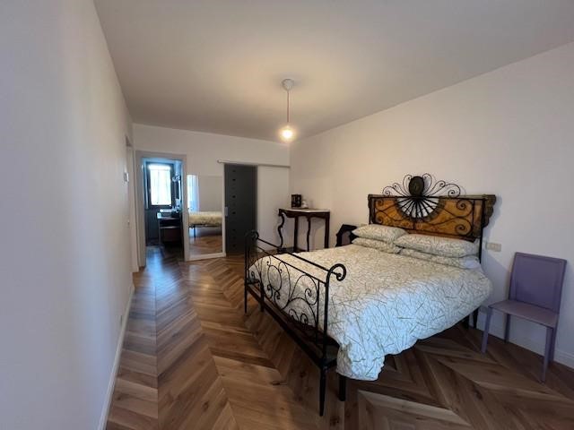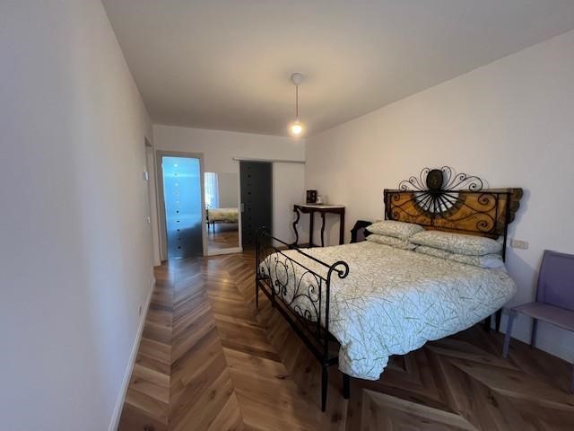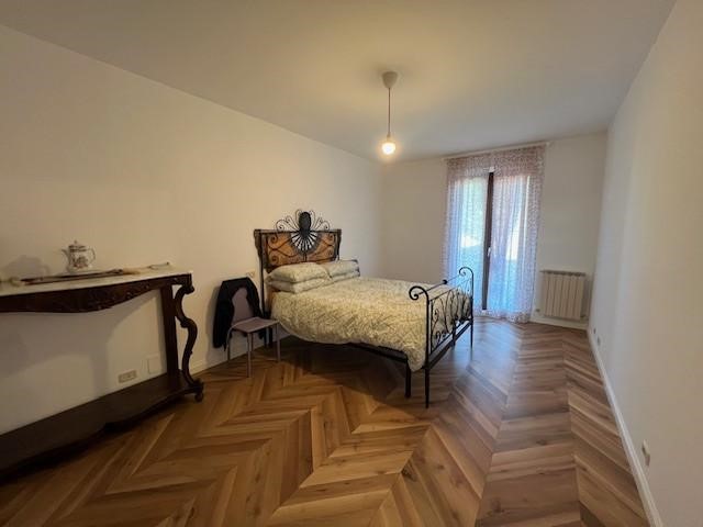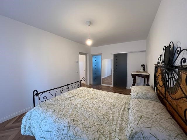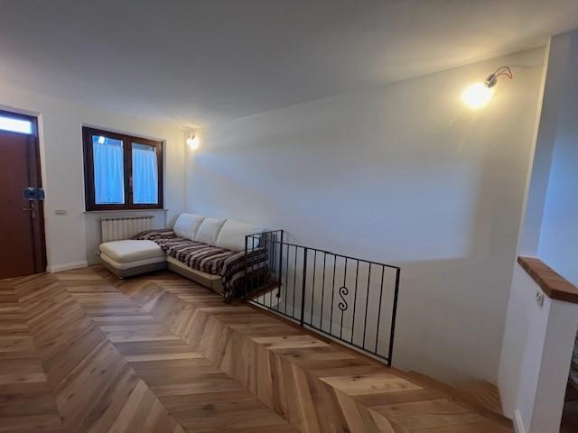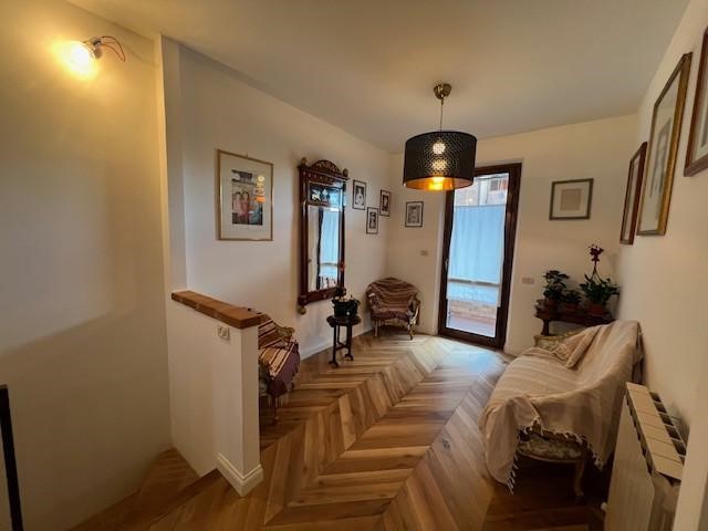 Entrando si viene accolti da un ampio soggiorno, luminoso e ben distribuito, che si apre su un terrazzo. La zona notte del piano terra comprende una spaziosissima camera matrimoniale con cabina armadio e un bagno finestrato ristrutturato con gusto.