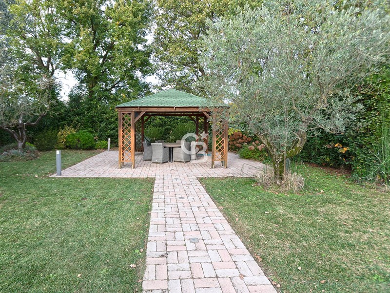 Un giardino perfettamente curato di circa 3.000 mq avvolge la proprietà, creando unatmosfera di armonia e relax dove al suo interno si trova una magnifica piscina interrata e riscaldata tramite pannelli fotovoltaici, circondata da unampia area prendisole con sdraio, ombrelloni e un elegante gazebo; uno spazio pensato per vivere al meglio ogni momento allaria aperta.