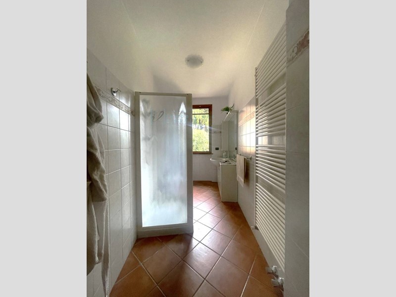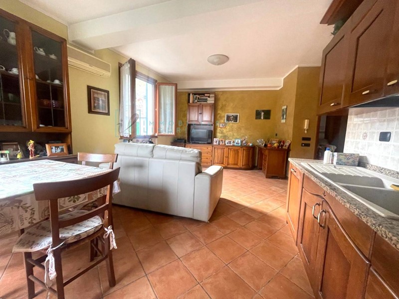 Tramite la scala interna si raggiunge il primo piano, composto da un grande soggiorno con zona pranzo e cucina a vista, camera da letto matrimoniale, bagno con antibagno ad uso lavanderia e un ripostiglio dove è anche collocata la caldaia.