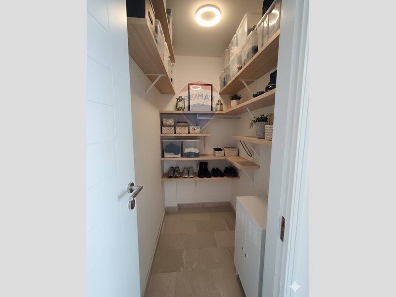 Si compone di ingresso su ampio soggiorno, proseguendo troviamo la cucina, due bagni, stanza per studio, tre camere da letto ed il ripostiglio.