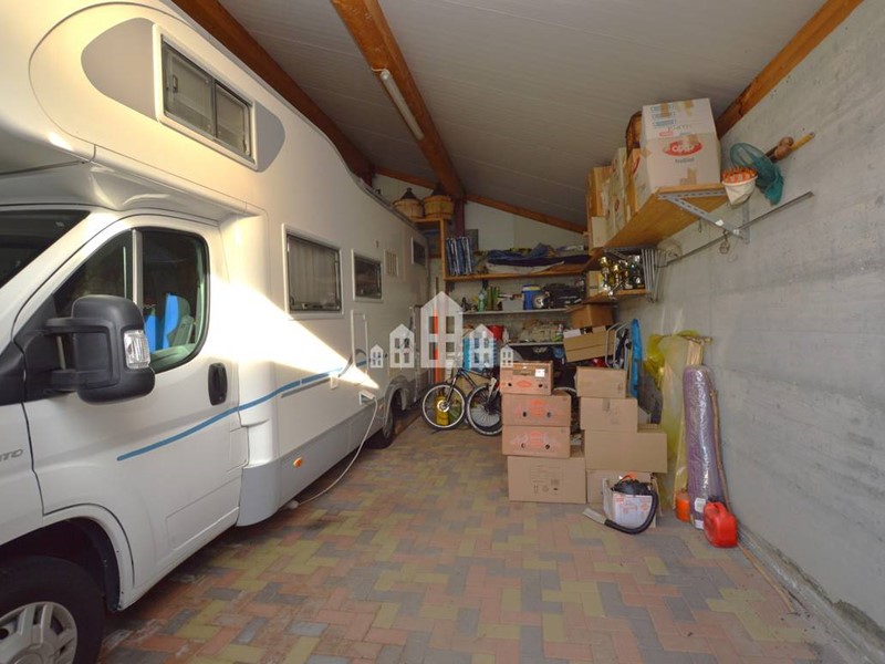 Di fronte alla casa, oltre la strada, troviamo una grande autorimessa. Sul retro della proprietà cè una travata su due livelli accessibile dal giardino, ideale come deposito, laboratorio, spazio hobby o ricovero attrezzi. Il giardino di circa 2.400 metri quadrati, in parte pianeggiante e recintato, è un vero angolo di tranquillità. Come lo useresti? Uno spazio relax? Un orto? Unarea giochi? Le possibilità sono molte.