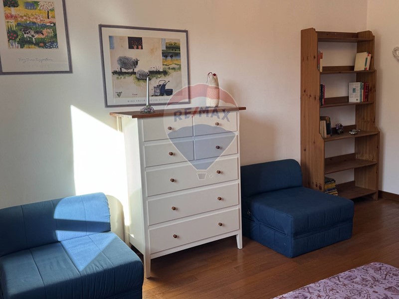 Al primo piano si accede tramite una comoda scala rifinita in rovere e dal disimpegno si accede, tramite botola con scala retrattile, allampio sottotetto, ideale come deposito.