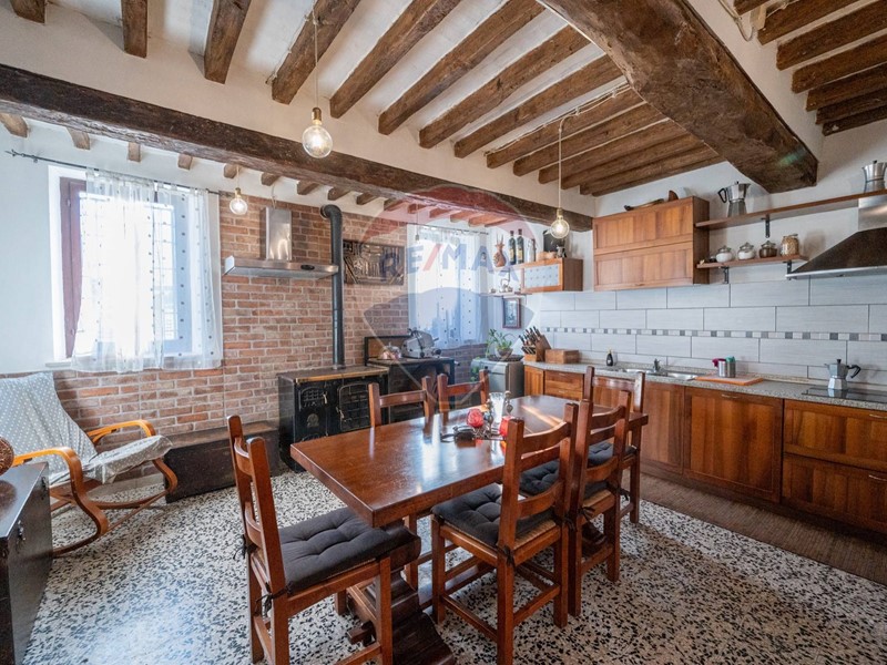 Limmobile affascina fin dal primo sguardo: travi in legno a vista, ambienti luminosi e ben organizzati, materiali di qualità e unatmosfera calda che richiama la tradizione rurale ma con tutte le comodità moderne.