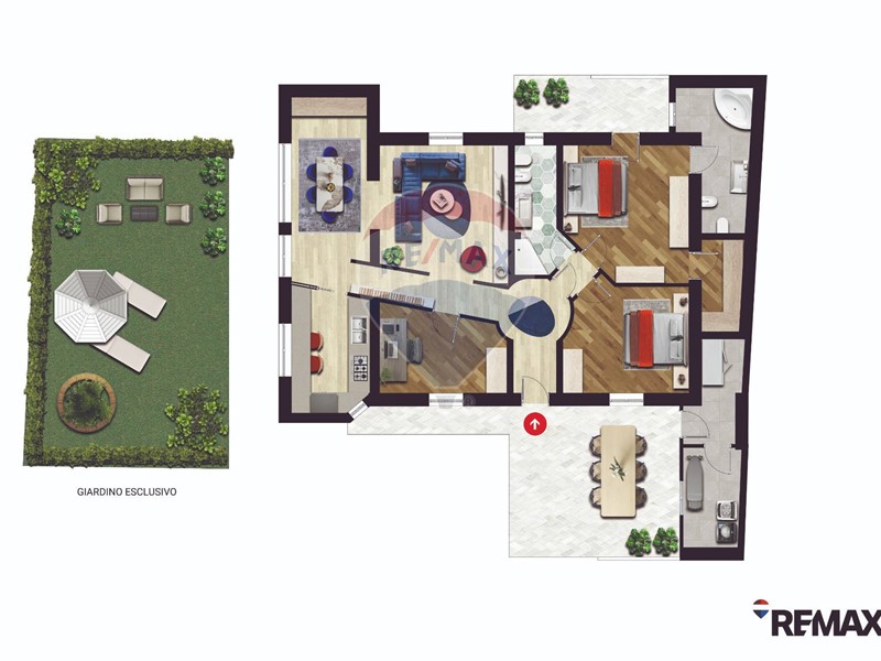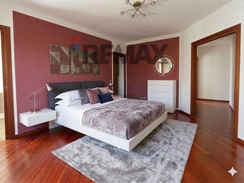 - Zona notte, separata da un disimpegno che ospita un bagno padronale con rivestimento in bisazza e due camere da letto matrimoniali di cui una completa di cabina armadio e bagno privato con vasca idromassaggio.
