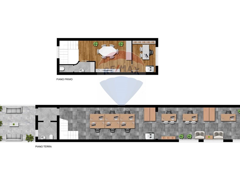 Limmobile si sviluppa su due livelli collegati da scala interna, per una superficie complessiva di circa 150 mq. Al piano terra si trova un ampio spazio open space, disimpegno, bagno finestrato (ristrutturato nel 2017 e conforme anche per persone con disabilità), oltre a una corte esterna di proprietà esclusiva. Al primo piano sono presenti due locali separati utilizzabili come negozio e ufficio, spogliatoio e un secondo bagno, anchesso recentemente ristrutturato.