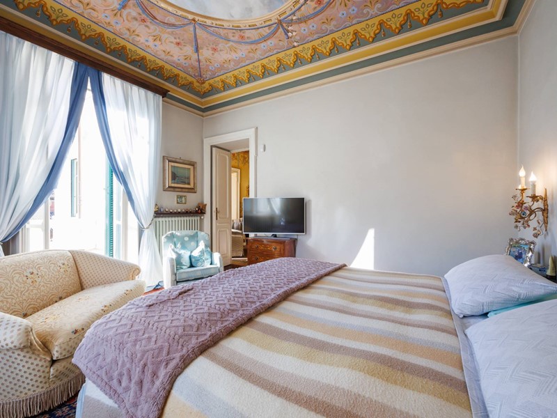 Nell'ingresso principale è presente una scalinata in marmo bianco di carrara che collega tutti i piani. Il primo piano è composto da tre camere da letto affrescate ognuna con il proprio bagno privato, cabina armadio e ulteriori due bagni.