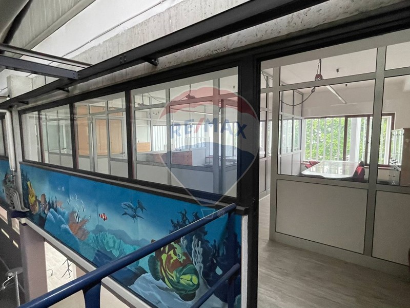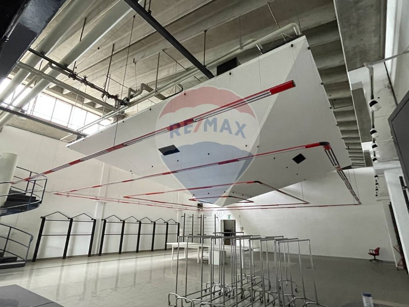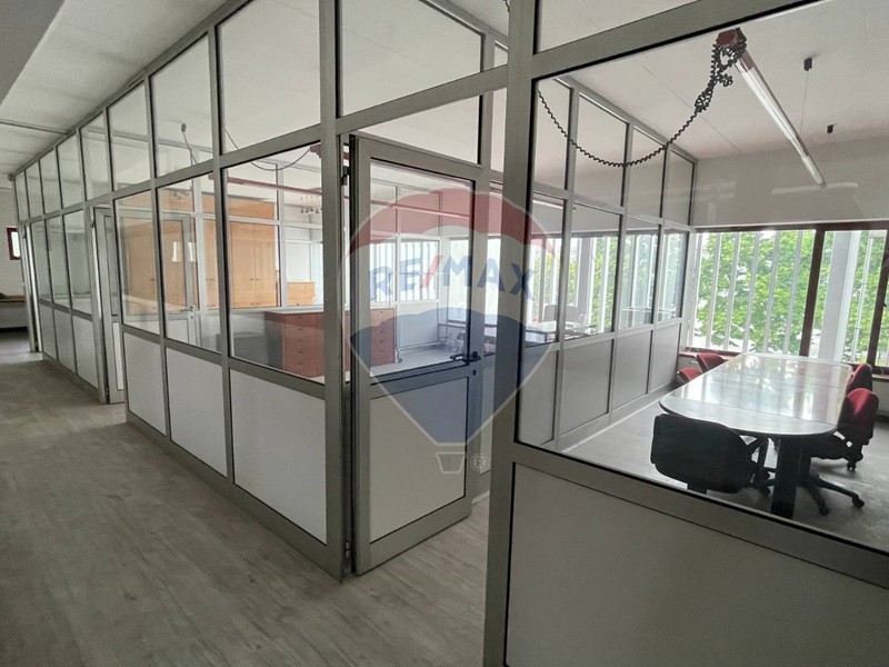 Limmobile è molto luminoso grazie alle ampie superfici vetrate e ai soffitti alti, ed è dotato di corridoio di accesso, due bagni, pavimentazione versatile e porte interne in vetro che valorizzano la luce naturale. Il piano superiore, adibito a uffici, presenta finiture curate: infissi in alluminio con doppio vetro, riscaldamento centralizzato con termosifoni alimentati da caldaia condominiale a metano, boiler elettrico per lacqua calda, predisposizione allarme e servizio di custodia attivo 24 ore su 24.