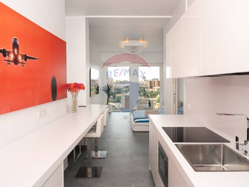 Situato a piano 8°, questo monolocale di 45 mq con doppia esposizione nord sud offre una vista panoramica e grande luminosità. Lingresso apre su un pratico disimpegno, che conduce al soggiorno con cucina a vista ambiente ideale per rilassarsi o ricevere ospiti.