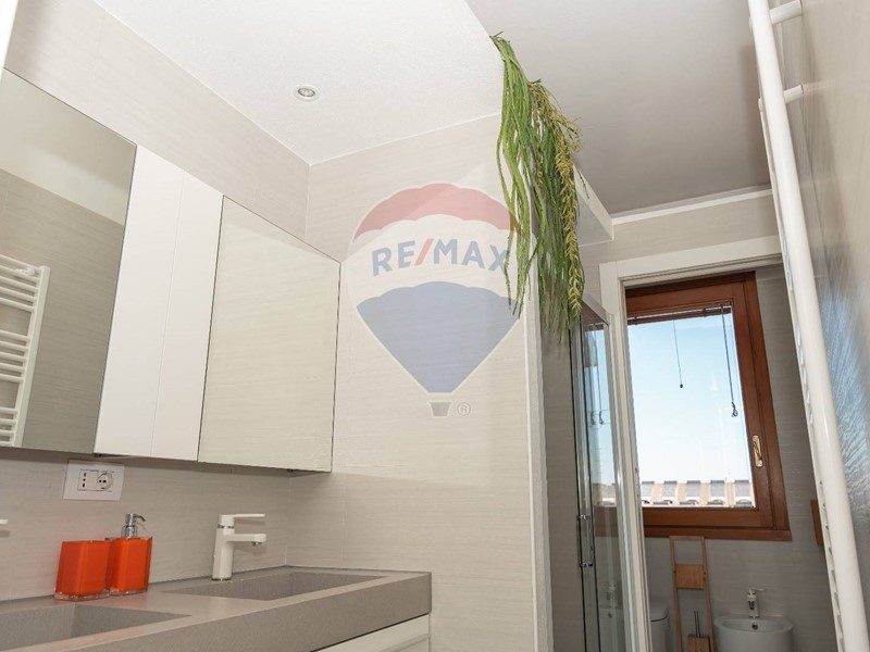 Il bagno è finestrato, e un comodo ripostiglio in quota aggiunge spazio utile.