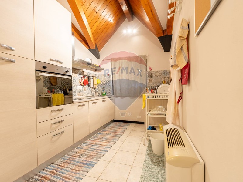 - Secondo piano: abitazione mansardata con travi a vista su grande open space, in questa soluzione la cucina è separata ed è abitabile. Camera da letto matrimoniale e bagno con lavanderia.