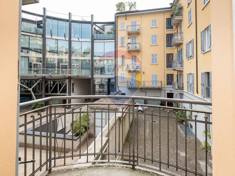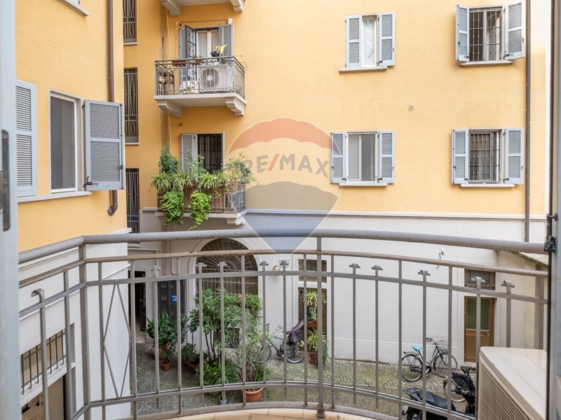 Lappartamento, situato al primo piano, gode di un doppio affaccio interno che lo rende particolarmente silenzioso e presenta pavimenti in parquet e due balconi.