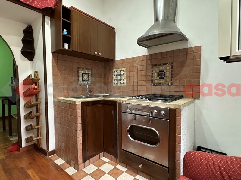 L'immobile è composto da soggiorno con camino funzionante, cucina finestrata con cucina in muratura e ripiani incassati, bagno con vasca e camera da letto. La pavimentazione è in parquet a quadrotte, i soffitti sono impreziositi da cornici decorative in gesso e gli infissi sono nuovi in PVC/alluminio con doppio vetro.