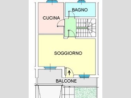 Il piano terra è servito in entrambi i lati da giardino privato (nord/sud). Vi si accede attraverso un grazioso balcone di ingresso e si compone di soggiorno, cucina abitabile, bagno.