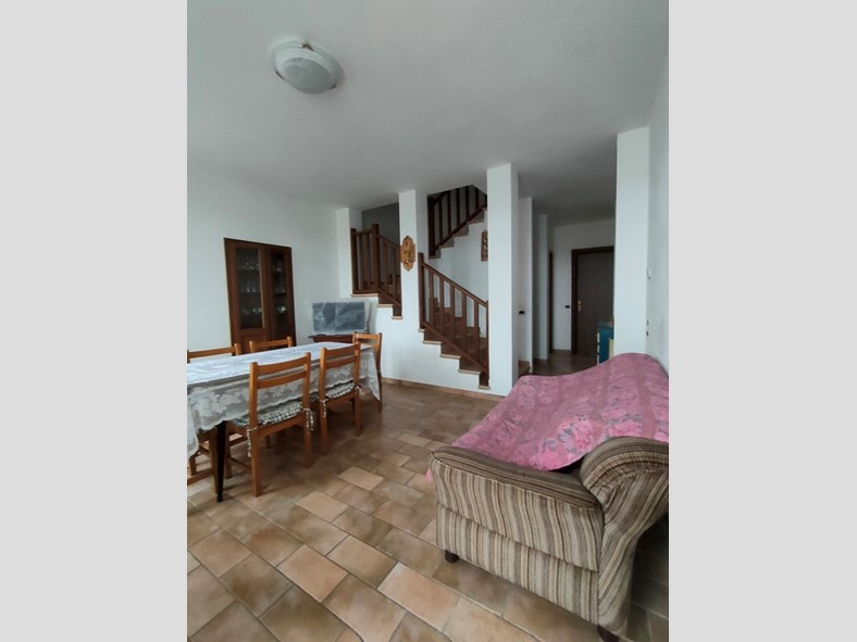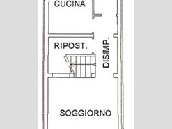L'immobile offre al piano terra un'accogliente zona giorno con ingresso diretto nel soggiorno, caratterizzato da un vano scale a vista. Completano il piano una cucina abitabile, un bagno e un comodo ripostiglio ricavato nel sottoscala.