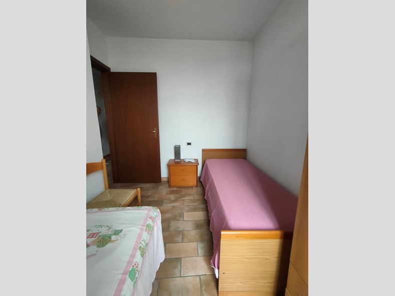 Il piano primo ospita la zona notte, composta da una camera matrimoniale, una camera singola e un bagno dotato di box doccia.