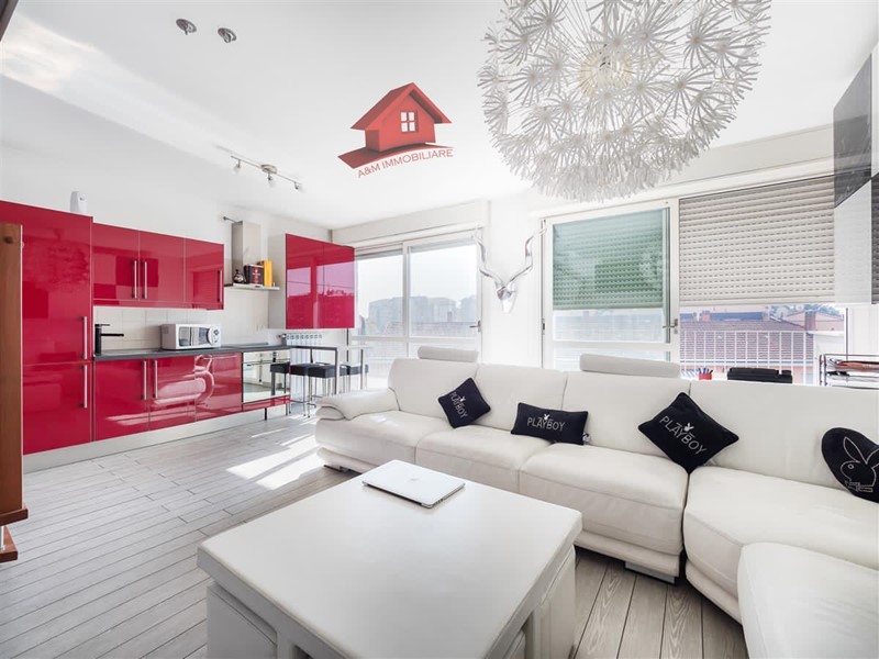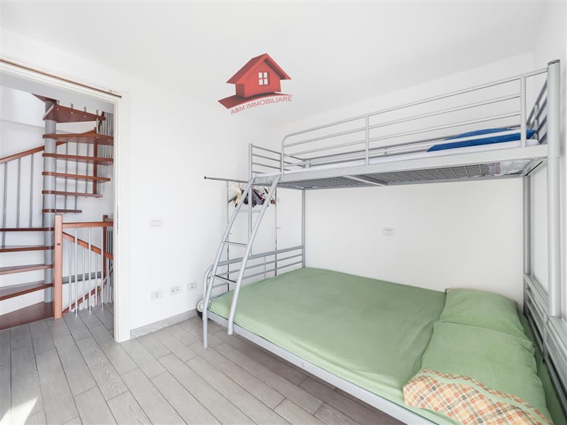 Quarto piano di circa 65 mq con ingresso, ampio e luminoso soggiorno e cucina open space, vetrate scorrevoli con triplo vetro, balcone di circa 13 mq, bagno di servizio con doccia, tramite scala interna si accede al piano quinto dove si sviluppa la zona notte con una camera matrimoniale con cabina armadio e cameretta, con affaccio sul balcone di circa 13 mq e bagno con vasca.
