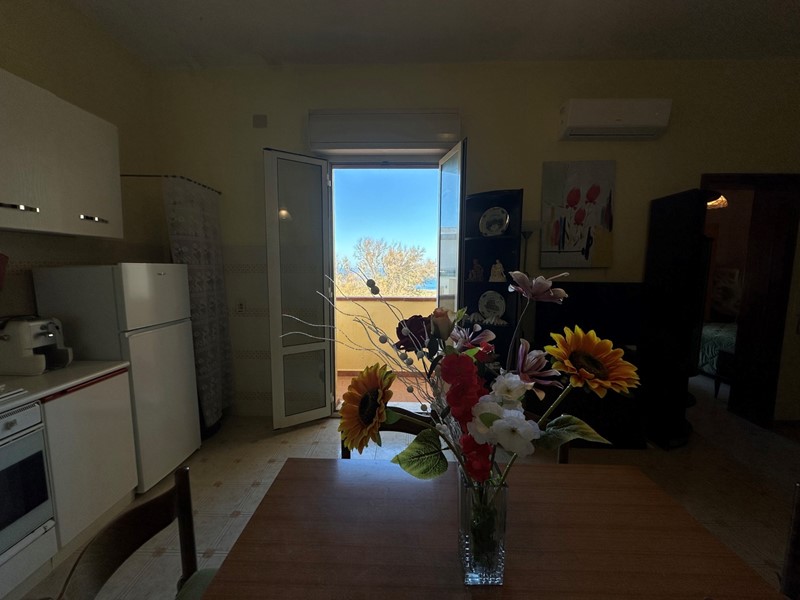 L'immobile, di circa 95 m², si apre su un ampio salone - cucina unico ambiente dal quale si accede a un balcone con splendida vista mare. La zona notte comprende tre camere da letto, un bagno e ulteriori balconi che si affacciano sulla strada, garantendo una piacevole luminosità durante tutto il giorno.
