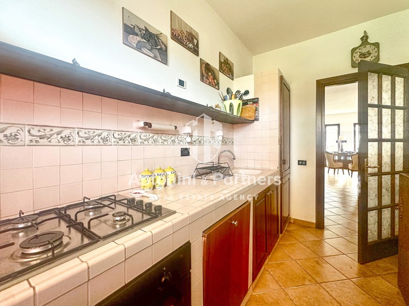 La dependance, elegante, luminosa e dotata di doppio ingresso. Si divide l'un'ampia cucina abitabile con forno a legna, il salotto con camino, due camere da letto, un bagno e un locale tecnico.