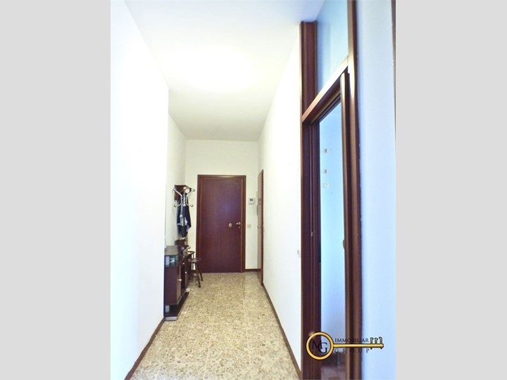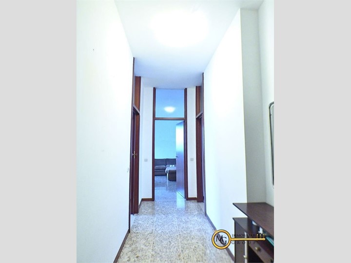 In prossimità del centro proponiamo un ampio trilocale in buone condizioni interne. \nL'abitazione, di 105 mq, si sviluppa in uno spazioso disimpegno che conduce ad una cucina abitabile e ad un luminoso salone, che gode di un affaccio su un ampio terrazzo angolare, perfetto per rilassarsi all'aperto.\nUn secondo disimpegno separa la zona giorno dalla zona notte, dove troviamo una camera matrimoniale particolarmente ampia, un bagno di servizio provvisto di box doccia e vasca da bagno e una comoda cameretta.\nA completare la proprietà, uno spazioso ripostiglio, una cantina e un box singolo.