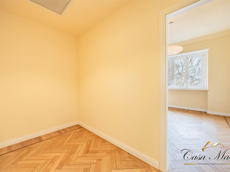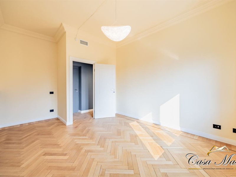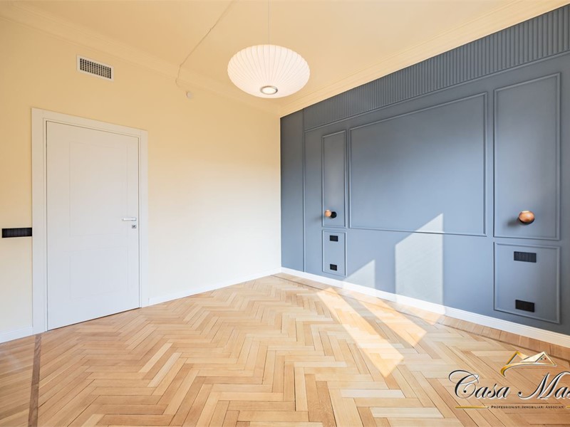 In via San Dalmazzo 24, di fronte al giardino Lamarmora ed all'angolo con via Bertola, nel cuore di Torino, sorge un magnifico palazzo d'epoca finemente mantenuto e dotato di servizio di portineria. In questo contesto esclusivo proponiamo in vendita un raffinato appartamento di 150 mq situato al secondo piano con ascensore. L'appartamento, la cui consegna è prevista entro il 30 maggio 2026, sarà completamente rinnovato con una ristrutturazione di alto livello, pensata per offrire comfort moderni e un'atmosfera di autentico pregio.\nL'ingresso, ampio ed elegante, introduce con naturalezza le diverse aree della casa. La zona giorno con cucina a vista, di circa 40 metri quadri risulta straordinariamente luminosa grazie alla finestra ed al balcone con affaccio diretto su via Bertola, elemento che dona profondità e luce costante agli spazi. La zona notte è garantita dalle due ampie camere da letto, entrambe affacciate sul silenzioso interno corte attraverso un lungo balcone che percorre l'intera facciata interna. A completare l'alloggio vi sono due ampi bagni finemente rifiniti e una cabina armadio.\nLa ristrutturazione interesserà ogni dettaglio: dalla nuova porta blindata agli infissi in legno con doppio vetro, dagli impianti completamente sostituiti e certificati ai nuovi pavimenti in parquet, fino all'illuminazione a faretti LED e all'introduzione di boiserie che conferiranno un carattere distintivo e raffinato agli ambienti. L'appartamento sarà inoltre dotato di un moderno impianto di climatizzazione, pensato per garantire benessere in ogni stagione.\nLa posizione dell'appartamento, immersa nella vita elegante del centro, tra giardini, palazzi storici e tutti i servizi più comodi, rende questa proprietà una soluzione ideale per chi desidera vivere Torino con stile, in un'abitazione di grande respiro e dal carattere autenticamente signorile. - Maggiori Dettagli: Porta blindata