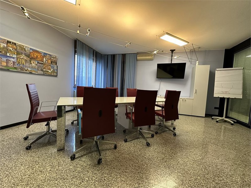 Ufficio di rappresentanza posto in signorile palazzina sita nella via principale della cittadina e adibita prevalentemente a studi professionali. L'immobile di grande metratura si compone di ben 212 mq distribuiti su di un unico livello, suddivisi in ingresso, cinque locali uffici, un'ampia sala riunioni, ed un ufficio direzionale, oltre due bagni e quattro balconi. L'immobile è stato suddiviso con pareti in cartongesso ed in parte con pareti modulari, risulta quindi facilmente modificabile nell'eventualità di una diversa distribizione dei locali. L'appartamento è dotato di impianto climatizzazione, tapparelle motorizzate con comando apertura/chiusura centralizzata, impianto d'allarme, impianto elettrico nuovo con cablaggio, riscaldamento autonomo. L'ufficio è arredato, completo di cantina e con possibilità di box singolo. Spese di condominio and euro; 1.800 annue. - Maggiori Dettagli: Climatizzato, Sistema di allarme, Porta blindata