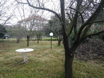 Fabbricato a due piani f.t. con accesso pedonale e carraio dalla via Mazzini, attraverso areacortilizia comune e altro cancello posto a sud, composto da:- al piano terreno: soggiorno con angolo cottura, bagno e loggia, collegati al piano superiore con scala interna;- al piano primo: due camere e servizi, collegato al piano inferiore con scala interna;- al piano terreno: un locale ad uso autorimessa, con accesso da via Mazzini attraverso cortilecomune;- n. due terreni edificabili, di cui uno adibito ad orto.