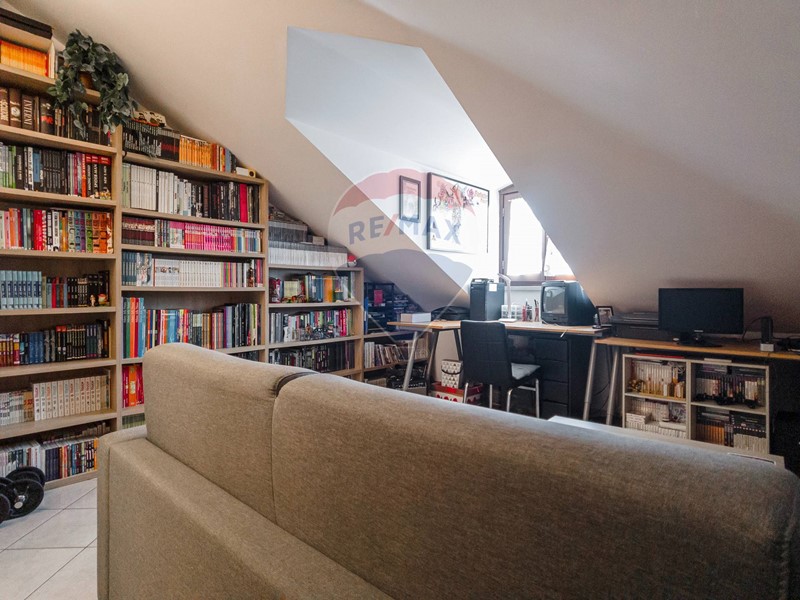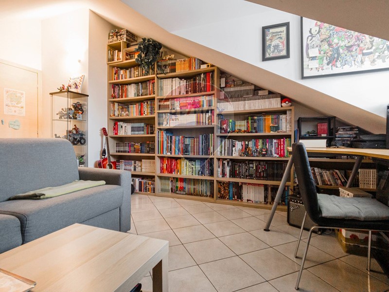 L'immobile, costruito nel 2011, si sviluppa su due livelli ed esattamente 55 mq per piano ed è composto al piano terzo da ingresso, soggiorno con angolo cottura che si collega al balcone dove è presente un utilissimo ripostiglio, una camera da letto con balcone, bagno con doccia e doppio lavandino. Al piano Mansardato collegato sia da scala interna e anche dal pianerottolo delle scale con portoncino blindato troviamo un due vani e un bagno finestrato con vasca. I locali sono luminosi grazie agli abbaini.