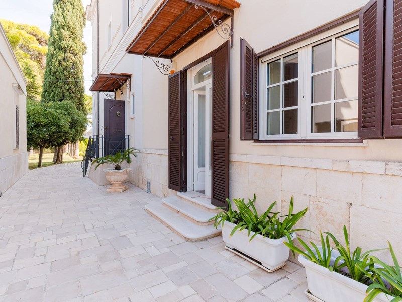 Infine la grande portafinestra che dà sul balcone posto sul portone dellingresso principale da cui si può godere della veduta sul viale alberato, le siepi che formano mosaici e la sorprendente vista mare. Dotati di finiture di pregio gli appartamenti hanno infissi in vetro camera, riscaldamento autonomo, climatizzazione, caminetti. Particolare attenzione è stata posta anche alla sicurezza con impianto di allarme volumetrico e perimetrale oltre un adeguato impianto di illuminazione esterna. Non dimentichiamo un utilissimo impianto di irrigazione che ci permette di mantenere verde e rigoglioso durante tutto lanno il giardino. La magione ha un ulteriore accesso carrabile laterale che oltre a condurci ad un comodo parcheggio per gli ospiti ci permette laccesso ad una dependance in fase di ristrutturazione con annesso patio esterno riservato e completamente indipendente. Ci sarebbe ancora tanto da raccontare su questa splendida dimora, ma forse è il caso che prenotiate una visita, se siete alla ricerca della casa dei vostri sogni.