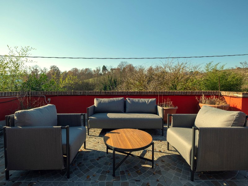 La proprietà è circondata dal suo vigneto privato e da un ampio terreno, evocando latmosfera di un esclusivo rifugio enologico perfetto per chi desidera un legame autentico e sofisticato con la campagna piemontese.