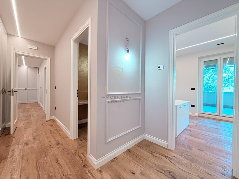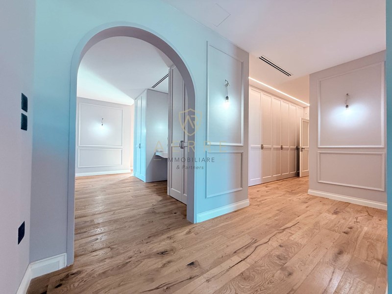 Il piano terzo, completamente ristrutturato, è un susseguirsi di boiserie su misura, archi decorativi e giochi di luce studiati per accompagnare lo sguardo con armonia.