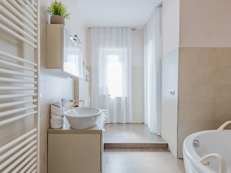N. 2 due camere da letto, entrambe matrimoniali, luminose ed accoglienti oltre a n. 2 bagni, lavanderia ed ampio balcone vivibile in estate. L'appartamento è completamente arredato, offrendo un mix di eleganza e funzionalità.